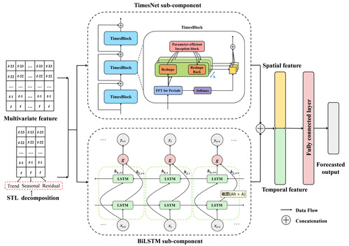 上海理工大学能动学院徐洪涛教授科研团队对此开展了深入的研究。在电力负荷预测方面,研究团队创新性地构建了一种TCN-LSTM和LightGBM的集成模型。TCN-LSTM模型能够挖掘时间序列的时空特性,弥补LightGBM模型缺乏时间感知的缺陷,可以提高集成模型预测结果的稳健性;在光伏发电功率预测方面,考虑数据的时空特性,提出了融合季节趋势分解和自动调优的并行TimesNet-BiLSTM模型,用于超短期光伏功率的预测。其中TimesNet模型用来提取数据在二维空间上的多个周期性特征,BiLSTM模型则用来解决数据的长期依赖性问题。研究利用异步连续减半算法调优超参数,显著缩短模型的训练时间。与12种基准模型(即常见的机器学习和深度学习模型)进行比较,所提出的模型在两个不同的数据集上均实现了最佳的性能,证明了模型的鲁棒性和优越性。