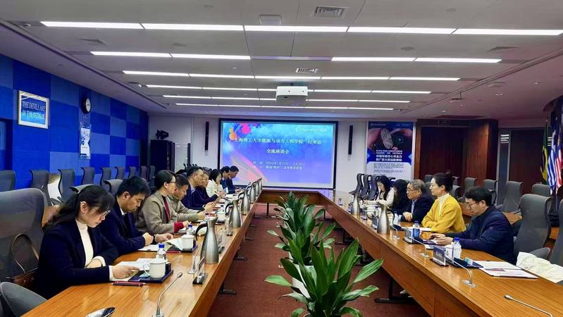 院长刘宝林介绍,当前学校正深入推进新一轮高等教育综合改革试点工作,坚持“以产定研、为产育人”,将大学的教育链、创新链深度融入区域产业链与社会需求链。面对国家能源战略与产业变革需求,学院推出了一系列举措来积极优化学科结构,锚定新能源、新技术方向加快转型布局,激励青年教师担当重任。副院长杨杰围绕专业学位博士培养改革、开放工程背景博士申请通道等创新举措进行了详细说明,充分彰显学院强化工程实践导向、培养高层次应用型人才的坚定决心。副院长杨亮系统介绍了学院在产业学院建设、人才培养落地等方面所实施的系列措施,明确以校企协同发力为路径,实现人才联合培养的改革方向,旨在推动学生走进企业开展实习实践,让学生沉浸式感受企业文化、接触前沿技术与产业实际需求,从而持续提升人才培养与行业需求的适配度,为产业发展输送高素质应用型人才。学院党委副书记钱海燕在交流中向常兆华董事长发出诚挚邀请,盼其在上海理工大学120周年校庆之际重返母校,为广大学子分享行业前沿见解与成长奋斗经验,助力青年学子明晰职业规划、树立职业理想。最后学院党委书记谢金平表示,能动学院作为特色鲜明的应用研究型学院,积淀了深厚的工程教育底蕴,始终坚守应用型办学特色。他强调,高水平应用型科研必须立足产业需求、服务产业应用,高水平应用型人才培养必须打破校园与行业的壁垒,实现校企资源互通、优势互补、深度融合。