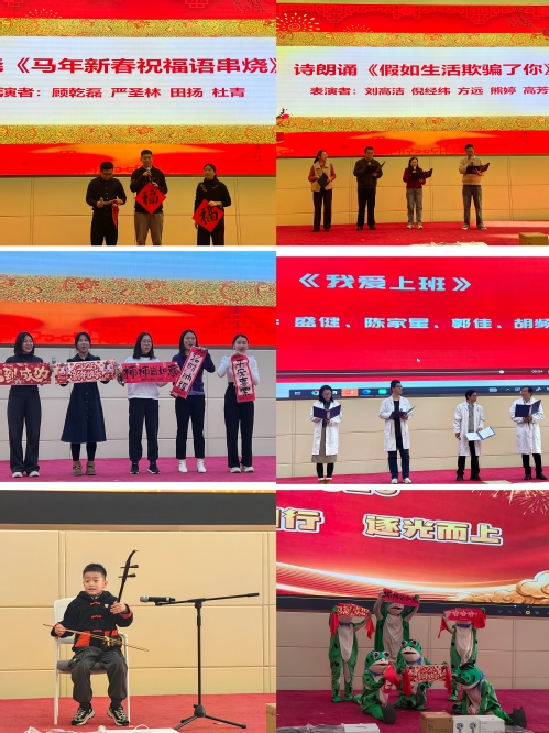 联欢会节目精彩纷呈,现场气氛热烈。能材院、储能所及制冷所教师代表带来的舞蹈《蛙!贵人来了!》活力四射,瞬间点燃了全场热情;“能动二代”高海棋小朋友的二胡独奏《小星星》天真烂漫,展现了教职工子女的风采。热工所与能材院教师带来的方言诗朗诵《假如生活欺骗了你》,用五湖四海的乡音传递了深厚情怀;空天所与热能所“双嘉组合”赵嘉毅、陈嘉琪老师献唱《直到世界的尽头》,激昂的旋律唱出了科研人探索未知的执着。新进教师们带来的《马年新春祝福语串烧》和实验中心老师们自编自演的节目《我爱上班》,以幽默暖心的方式道出了对工作的热爱与坚守。主持人李铭哲老师以一首民谣《你的姑娘》,深情讴歌了前辈们扎根三尺讲台、无私奉献的教育情怀,令在场观众动容。值得一提的是,刘宝林院长带来的萨克斯独奏《天路》婉转悠扬的乐声,不仅展现了艺术修养,更致敬了每一段奋斗的征程,赢得了现场经久不息的掌声。